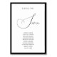 Create an elegant and organized seating display with this Classy Black Border Script Wedding Seating Chart Table Number. Designed with a bold black border, crisp white background, and graceful flowing script, this piece blends timeless sophistication with modern minimalism. The clean typography and refined layout make guest names easy to read while adding a luxurious touch to your wedding décor. Perfect for formal, classic, and black-and-white wedding themes, this table number seating chart sign brings cohesion and polished style to your reception setup.
