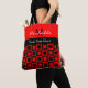 Classy Square Mönster Black & Red Monogram Namn Tote Bag