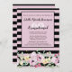 Classy Black Rosa Stripe Blommigt Birthday Inbjudningar