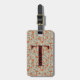 Klassisk bagagetagg med monogrammet med ditt första monogram i grönt på blommigtens gult mönster. Lägg till kontaktinformationen på baksidan.