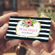 Classy Blommigt Watercolor Black White Stripe Visitkort