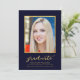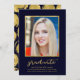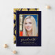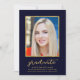 Notera studenten med det här studenten-klassfotot som visar ord "Student" i ett snyggt-skript i faux guld-folie mot mörk blått bakgrund med en faux guld-folie gräns kring fotografiet. Kortet har en faux guld-folie mönster mot mörk blått baksida. Anpassa den genom att ersätta platshållartexten och ersätta exemplet/platshållarfotot med ett eget foto. Om du vill ha fler alternativ som att ändra teckensnittet och det är storlekt/färg eller mellanrummet mellan brev klickar du på knappen "Anpassa". *Observera att Zazzle Watermark som visas i zoomförhandsvisningen INTE visas på den slutliga tryckta produkten © Rosewood and Citrus
