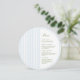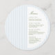 Elevate your table setting with this stylish round half-circle menu card, designed to be cut down the center to create a unique, modern presentation. The front features a clean layout with soft blue vertical stripes and elegant typography—perfect for contemporary weddings, rehearsal dinners, or upscale events.