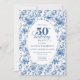 Classy Blue Toile de Jouy Floral 50th Birthday Inbjudningar
