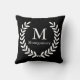 Ladda upp fotot från bröllop eller familjen till dekorativ kudde med ett vitt band med parets namn och bröllop i svart. Baksidan har vita lagrar som ramlar in familjens monogram brev och fullt namn mot en svart bakgrund.