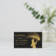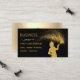 Elegant script calligraphy with gold glitter maid with broom gold glitter silhouette for cleaning service calling card gives it a luxury touch. Add your name, email, and other detail. this card is fully customizable. #cleaningbusinesscard ##luxurycleaningservices #blackandgildcleaningbusinesscard