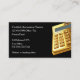 Classy simple CPA Accountant business cards custom design created with a gold tone upscale calculator as a background graphic and custom layout for a personal or business Accountant, Financial Advisor, or Money Manager.