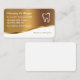 Affärskortet Classy Dentist med guld ser modern bakgrundsgrafik och tandsymbol tillsammans med en enkel layout som du kan anpassa onlinen. Gör att du kan dela ut dina affärskort i stil och är designad för ett kontor för tandvård, ortodost eller något annat företag inom tandvård. Finns på affärskortet lagrar i det rundade hörnet för en mer hållbar utformning.