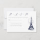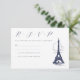 Den här formella OSA kort innehåller en vintage som illustrerar Eiffel Torn i Paris, Frankrike, som du kan ersätta med en bild av din bröllop-plats (transparent eller vit bakgrund föredras). I elegantens mörk blått text anges titeln, om gästen kommer att acceptera eller avvisa, och datum för att svara senast. På baksidan finns en rad som du kan använda för att skriva gästnumret (vilket är användbart när du håller reda på många RSVP:er). Bläddra i min samling efter matchande inbjudningssvit. ・ ・ För fler klassiska bröllop-sviter, gå till min butik Zazzle.com/EventsByJessicaAmber ・ ・ För anpassningsbar order, meddela mig på Zazzle