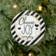 Fira julhelgen med den här eleganten och klassen "Välj glädjen varje dag" har ett banat ornament. Båda sidorna är desamma och är svarta med vit rand och ett glittercentrum i guld. Perfekt att hänga i träd, mantel eller någon annan speciell visning.