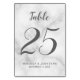 Klassy Elegant White Marble Bröllop Bordsnummer med titel i grått modernt skript med detaljer i grått modern sans serif-teckensnitt på vit marmorbakgrund.