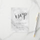 Classy Elegant White Marble Wedding Suite: OSA kort med titel i modernt grått-skript med detaljer i grått modern sans serif-teckensnitt på vit marmorbakgrund.