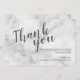 Tack för Classy Elegant White Marble Bröllop. Du Card med titel i modernt grått-skript med text i grått modern sans serif-teckensnitt på vit marmorbakgrund.