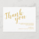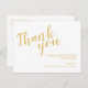 Postkort för Classy Elegant White och Guld Bröllop Tack med titel i guld, modernt skriptteckensnitt med detaljer i guld moderna sans serif-teckensnitt på vit bakgrund. Obs! Folidinformationen simuleras i teckningen. Ingen faktisk folie kommer att användas vid skapar av denna produkt.