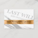 Classy new Will and trust estate Attorney business card design in a modern style with a Will graphic lightly printed as a backdrop for your estate planning business with name featured on the front and your contact details organized on the flip side.