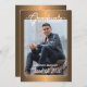 Unikt och trendig grattiss student-meddelande och firande-partsinbjudningskort, med en färgad för klassisk faux shiny brass-övertoning av koppar-guld. Med utrymme att anpassa eller anpassa sig med ett foto kan du läsa om evenemangen namn i student, klassåret studenten, högskolan, framtida högskolan eller universiteten namn och firande party. Låt familjen, vännerna och grannarna veta att det finns ett redo i lycklig student för att erövra världen, och inbjudan alla för att kom fira evenemanget i lycklig med er!