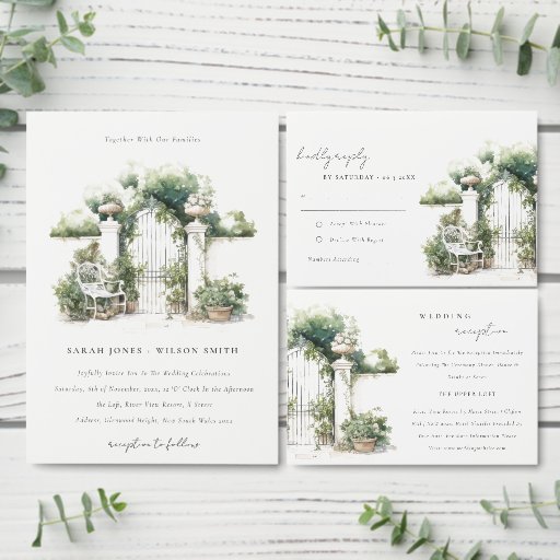 Classy Fransk Garden Landscape Rehearsal Dinner Inbjudningar