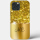 Glitzy classy dam monogram smartphone fodral för iPhone designad med Faux guld glitter och och blank guld formgivning inslag. Anpassa den monogrammade onlinen namn initialer.
