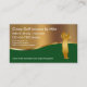 Här är en affärskortmall för coola och klassundervisning i golf med guld-färgadens bakgrund som ger presentationen ett litet klassutrymme och innehåller en golfskärm som byter en golfklubb. Skapat för golfindustrin och används av golfinstruktörspros, golf skolor och privatlektioner från golfexperter på nationell nivå.