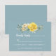 Den här bröllopet OSA för blommigt i contemporary är skapat för att matcha vår insamling av Gult ro bröllop i vattenfärg, och har en klass och elegant med gult i vattenfärg, kompletterad med delikat grönt och accentuerad med guldro (faux löv) över en modern, ren, dammblå bakgrund. Kortets baksida har en solid koordinerande dammig blå färg. Kontakta mig gärna på acherryonthecake@hotmail.com om du vill ha ytterligare anpassning, ändringar i färg eller andra samordningsposter (tillåt 1-2 arbetsdagar).