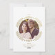 Kort med enkla Helgdagar för Elegant med två av dina favoritfoton. Små guld hamnar på vit bakgrund på framsidan och härlig ram av krans i guld på baksidan. Det står: "Önskar en God jul och en Gott nytt år". Anpassa den till din familj namn.