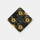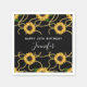 pappra blöjor för födelsedagsfest eller annan händelse med elegant och snyggt mönster. Söt gult solblommor och grönt löv omges av känsliga guld-kedjor. Svart bakgrund. Anpassa med din egen text.