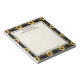 Ett anteckningsblock med elegant och snyggt mönster. Söt gult solblommor och grönt löv omges av känsliga guld-kedjor. Svart bakgrund. En fyrkantig bild med faux-parchment som läggs ovanpå så att du kan skriva inuti.