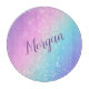 Anpassa ditt namn eller monogram i lila-skript på lila och blå stjärnbakgrund.