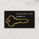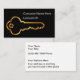 Locksmith business cards in a classy design with gold tone house key shape and simple editable custom layout . Excellent business card for themes related to locksmiths, home security or data security.