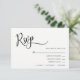 Elegant och unika bröllop OSA. Vit bakgrund (kan ändras till valfri färg) och svartskript kalligrafi OSA. Initialer av brud och groom på baksidan av kortet. Ställe för att lägga till MENU-alternativ. Redigerbara mallar så att du kan lägga till egen text. Perfekt för alla bröllop-teman eller årstider. Lägg till dessa svarskort i inbjudningarna. Se samling.