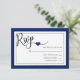 Elegant och unika bröllop OSA med litet marint blått hjärta. Vit rand-bakgrund (kan ändras till valfri färg) och svartskript kalligrafi-OSA. Initialer av brud och groom på baksidan av kortet. Ställe för att lägga till MENU-alternativ. Redigerbara mallar så att du kan lägga till egen text. Perfekt för alla bröllop-teman eller årstider. Lägg till dessa svarskort i inbjudningarna. Se samling.