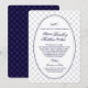 Den här Classy Navy Blue Check Mönster Wedding-inbjudan är ett klassiskt sätt att besöka gästerna från inbjudan till bröllop. Med en elegant oval på framsidan och en kombination av klassisk typsnitt med en elegant check mönster har baksidan samma kontroll mönster bakåt.