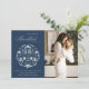 Classy Navy Blue Lycklig Hanukkah 1 Photo Blommigt Julkort