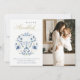 Classy Navy Blue Lycklig Hanukkah 1 Photo Blommigt Julkort