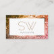 Classy Orange Rosa Ombre Glitter White Monogram Visitkort