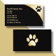 Klassande Djuromsorga Affärskort med simulerad guld-bild av ett tass i hund med en underbar textlayout som du kan anpassa nu. djuromsorgt profilkort för elegant som gör en underbar mall för en veterinär, barnvakt, djursjukhus eller husdjursutrustning.