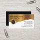 Klassen äkta utformning av affärskortet i gods med färgaden i Elegant guld och hussymbolen i ett emblem som ge i affärskortet vid beröring av klass. Skapat för en inspektion av sfärer, mäklare, agent eller hemmet och som presenteras på det rundade hörnet av lagrar.