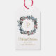Snyggt och hand plockade-klassade vattenfärgsröda och blå bär och evergreen löv i en krans med redigerbar namn och festive hälsning God jul och anpassningsbar monogram i utandningen.