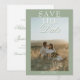 This modern & retro funky minimalist Wedding sage green and white Save The Date Template is great for you. If you are looking for a pretty, elegant and easy to customize greenery Wedding Save The Date Template .A very elegant simple white script wedding save the date on white background on the back and green on the front. With customizable photo. Grab this stylish wedding save the date and make your invites truly engaged.