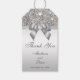 Personlig elegant anpassningsbar silver Tack presenterar märkre med vackra silver-sekviner mönster, en söt, glansig silver-tryckt båge och band och söt tryckt diamanthalverande juvel. Text, teckensnitt och färg i teckensnitt kan anpassas. Om du behöver hjälp med att anpassa produkten kontaktar du mig genom min butik. Jag kommer att vara lycklig för att hjälpa till. Jag har matchande produkter i min butik.