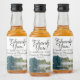 Dessa vackra minisekormärken flaska är perfekt för att tacka speciella gäster eller medlemmar av brudens sida. Rubriken lyder: Tack för att du firar med oss. Det finns utrymme för parets namn, datumet i bröllop och typen av spritdrycker. Den enkla utformningen har en lång härdad teal- eller turkos-färgad ro som speglas i bassäng i vatten. Elegant, romantisk, sofistikerad och chic.