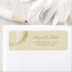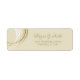 En klassetikett med en guld ring-design som korsas med konstnärliga vita penseldrag som är täckta med en krämig vaniljbakgrund. Anpassa den med länken Anpassa. Detta är en del av en samling med en matchande inbjudan, kuvert och andra nödvändiga bröllop-element.