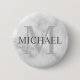 Classy White Marble Personlig Monogram och Namn Knapp