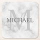 Classy White Marble Personlig Monogram och Namn Underlägg Papper Kvadrat