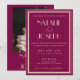 This wedding invitation is perfect for your wedding if you are looking for an elegant unique and easy editable photo invitation .An elegant unique luxurious wine deep burgundy and ivory image wedding template invitation. as you see it features plain wine background. And classy Parisian font in beige old money bright bride's and groom's first names and script info. With same deep burgundy background on the back and customizable photo and bride and groom s names. It is Affordable and it is also digital electronic e-invitation if you want to send it by text or email. All the info are customizable by clicking on the personalize button. So Grab it and make it yours so you make you invites engaged and excited .