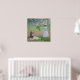 Claude Monet's I Skogen på Giverny fångar Blanche Hoschedé på hennes Easel med Suzanne Hoschedé Reading (1887) ett allvarligt ögonblick i Givernys naturliga omgivning. Blanche Hoschedé, Monets styvdotter, har en målning på en ål medan Suzanne Hoschedé, hennes syster, är sitta i närheten och läser en bok. Scenen ligger i skogens lush grey, med mjukt bläckfiltrering genom träd, vilket skapar en atmosfär av lugn och lugn. Monets namnteckning penselarbete syns tydligt i blandningen av ljus och färg, särskilt i lövet och figurer, som delikatesförvrängs i ett löst, imponerande stil. Denna grafik återspeglar Monets fascination med ljus och natur, liksom hans förmåga att fånga flyktiga stunder i vardagen.