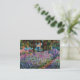 En färgrik klassikervisitkort som presenterar irises i en trädgård som målas av den franska impressionistmålare Claude Monet.
