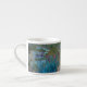En härlig mugg för klassikerblommaespresso som presenterar irises och näckrosor som målas av den franska impressionistmålare Claude Monet.
