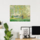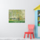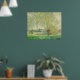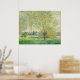 Denna vackra målning av Claude Monet har en scen som är löst målad med en palett från färg domineras nästan helt av coola av vår, sage, selleri och kellint grönt samt stål- och havsblått. Golden gult daubs i den nedre högerna antyder blomning, och löv på träd skapas med tunna, uppåtriktade slaganfall och dabs längs slender grenar. Träd når högt upp i en himlar fylld med svepar av beige, rosa och vår grönt som läggs över blek blå. Floden är ett lavender grått, och det låga, tätt klustrade byggnad är målat med en blandning av kron, persika och denim blue. Min bra art bilder kommer från offentliga gallerier och optimeras med hög upplösning för att ge en högkvalitativ utskrift.
