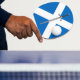 Richard H. Fay har utformat ett exempel på det distinkta tvåhandssvärdet Highland, som kallas claymore, med det blå och vita saldäcket i den skotska flagga.
